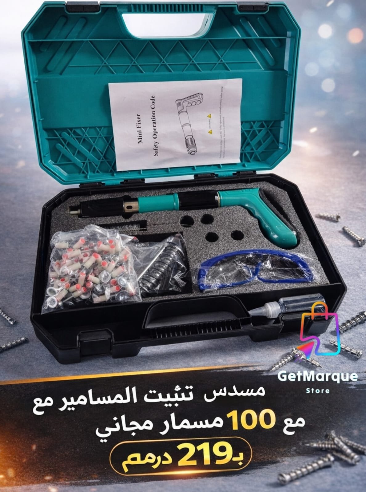 مسدس تثبيت المسامير مع 100 مسمار مجاني
